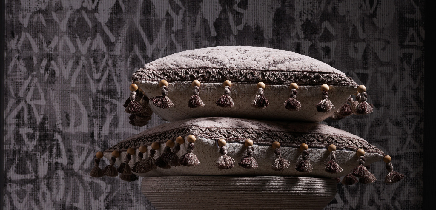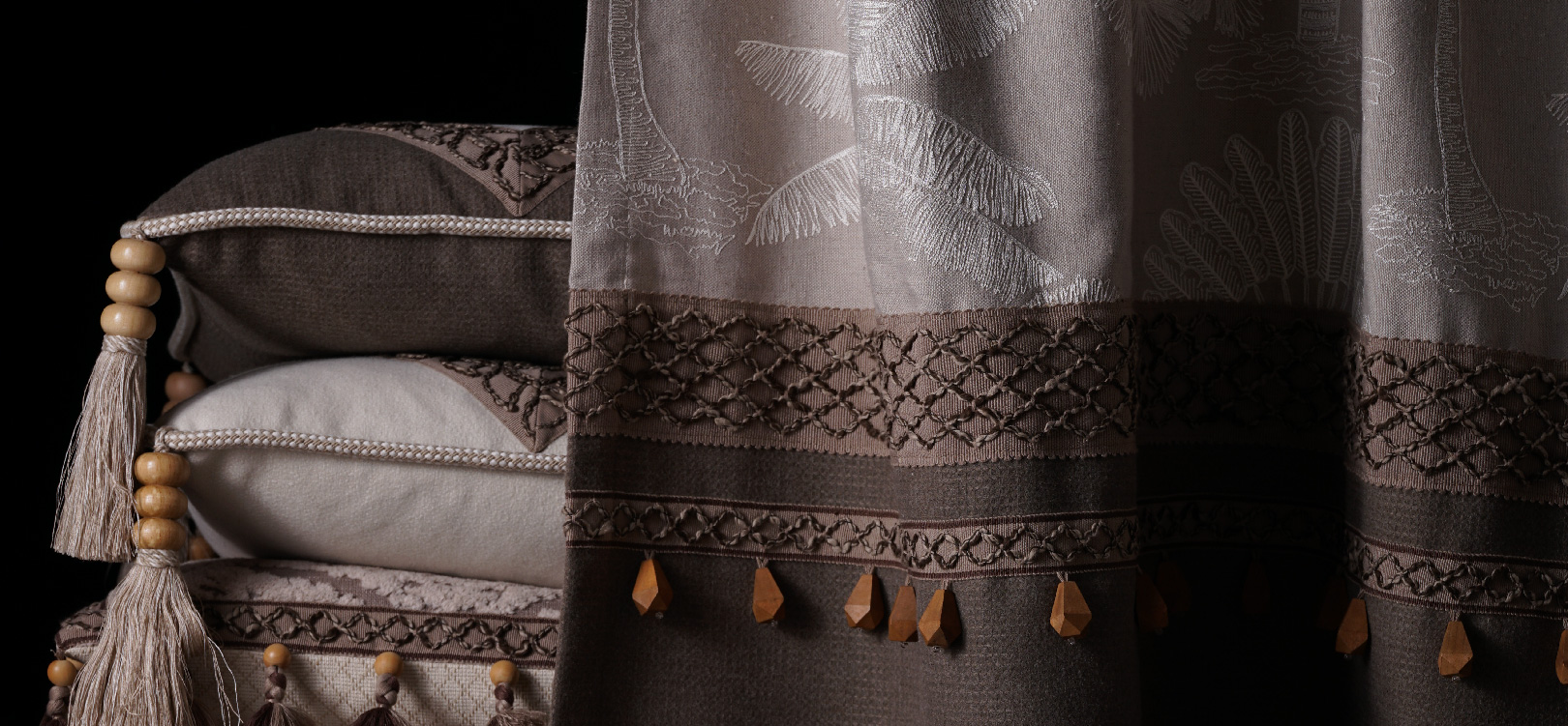 該系列產(chǎn)品花型立體感強(qiáng),大膽的運(yùn)用混色異型棉紗來營造自然肌理感,可兼具多種工藝的視覺呈現(xiàn)和使用效果。